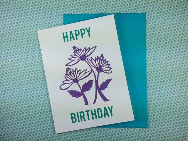 3 purple flower birthday card