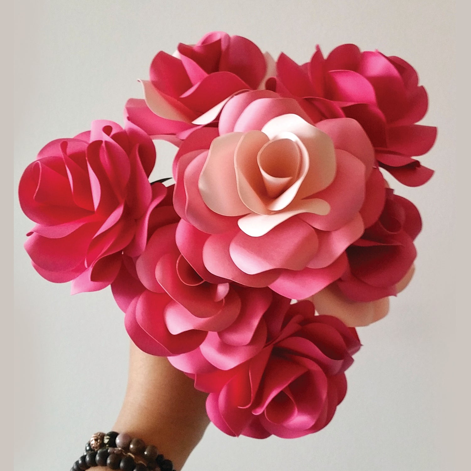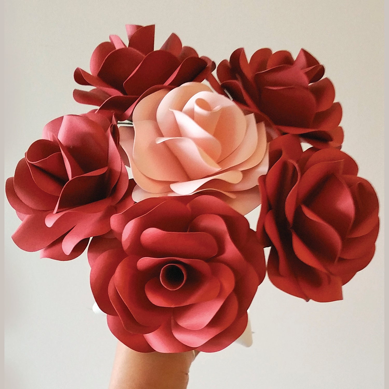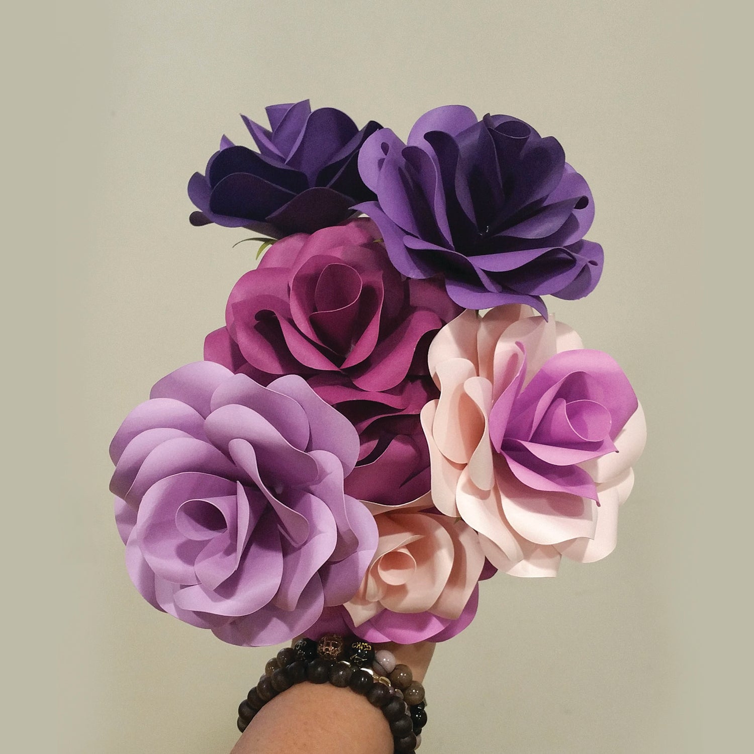 This paper flower arrangement is done by handcut. there is no machine use to create. Different color theme is available.
