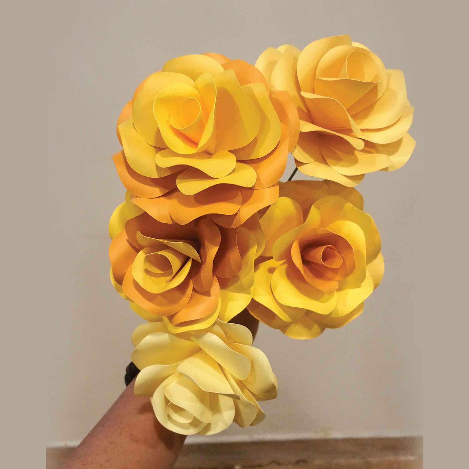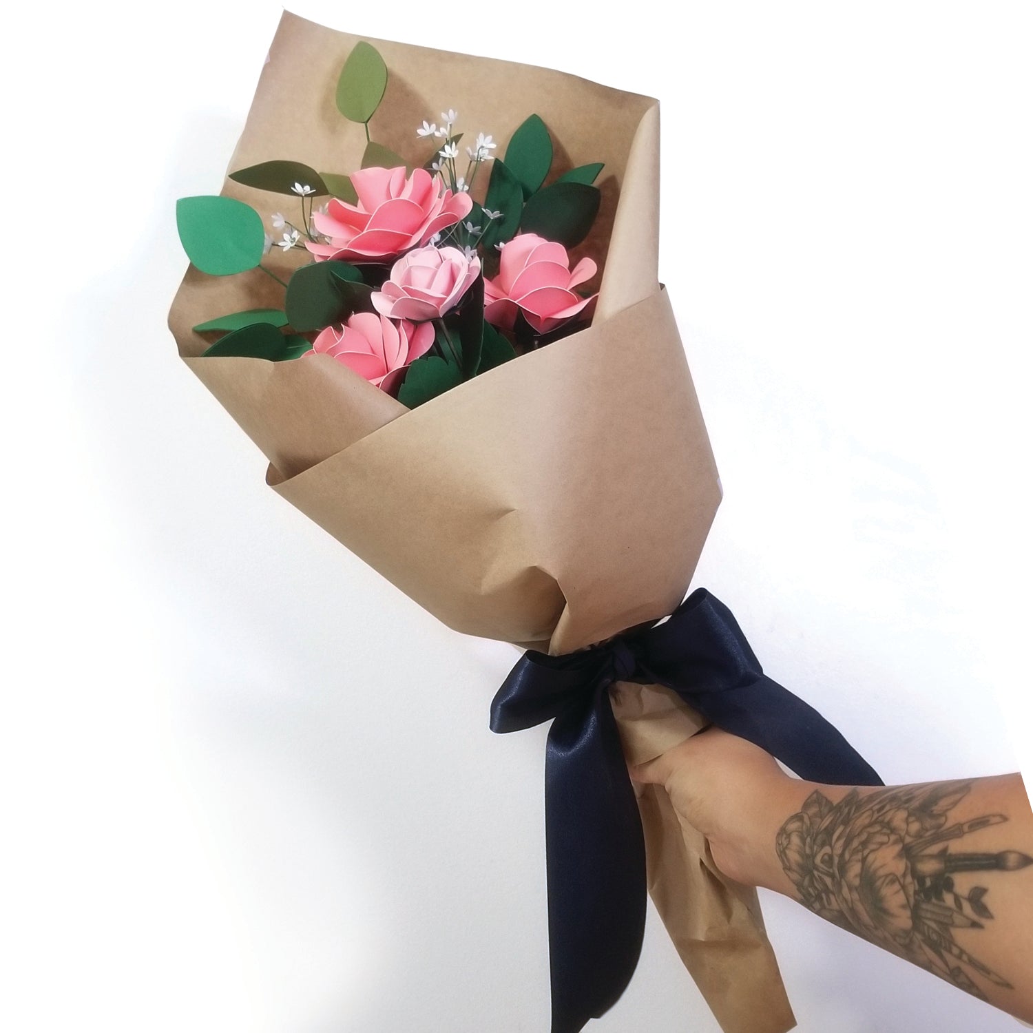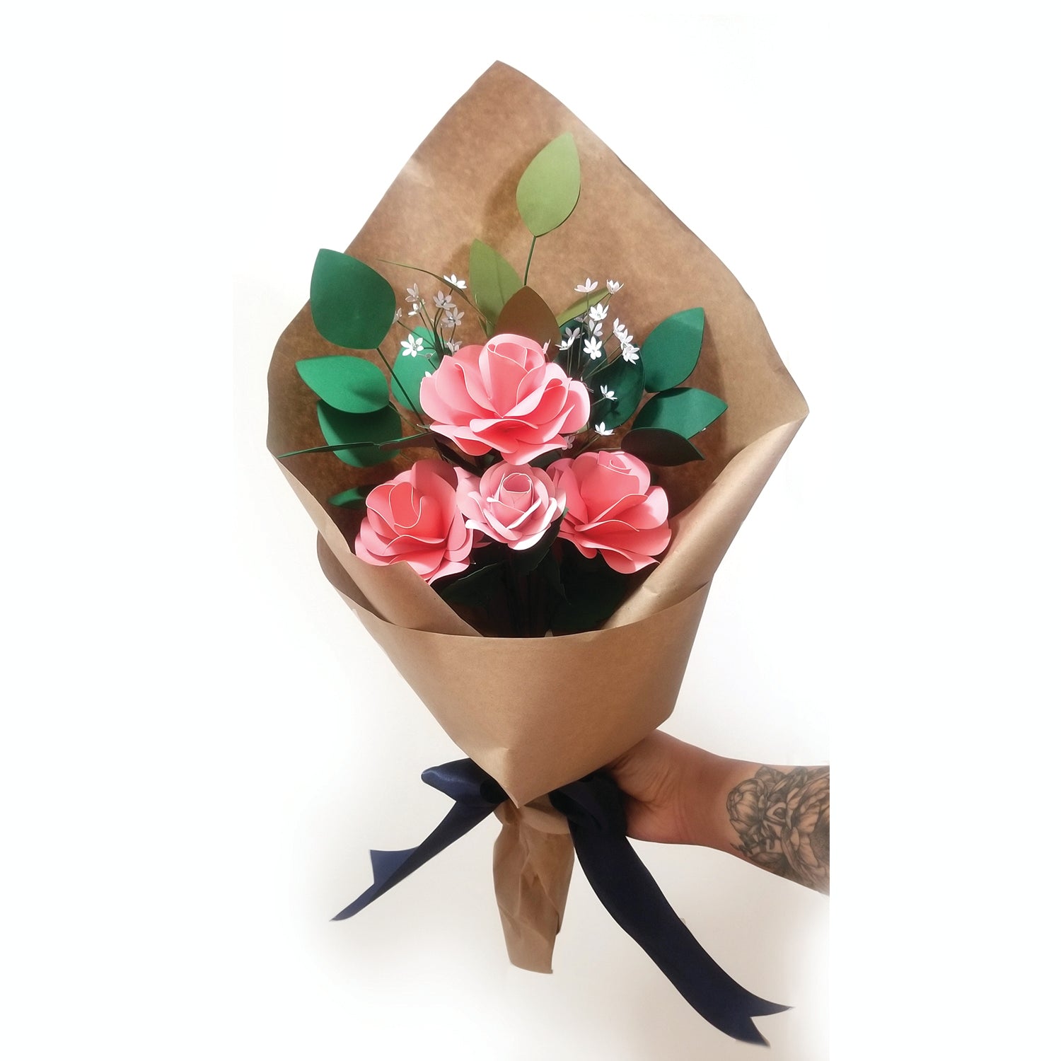This paper flower arrangement is done by handcut. there is no machine use to create. Different color theme is available.