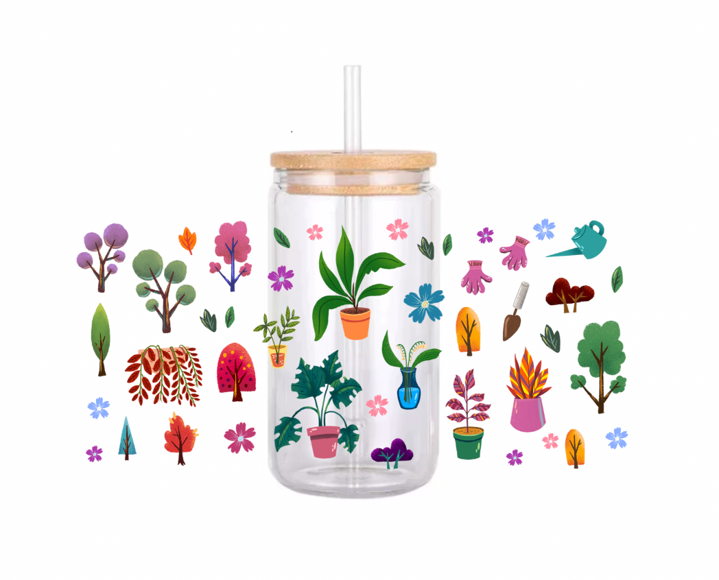 Glass Coffee cup with a glass Straw and Bamboo Lid.